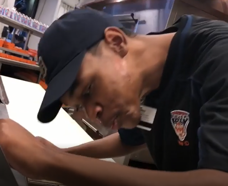 A Comerica Park employee has been fired and arrested after he was filmed spitting in pizzas during Friday's Detroit Tigers-Kansas City Royals game.